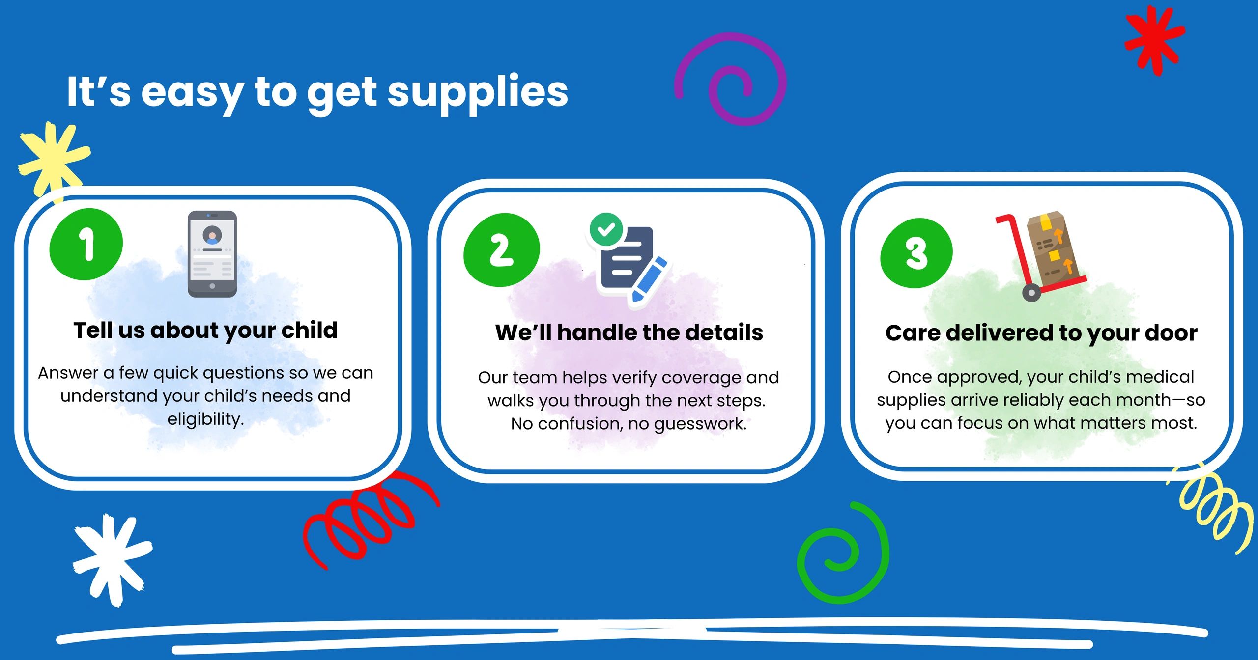 We provide no-cost incontinence supplies for your child with a qualifying diagnosis